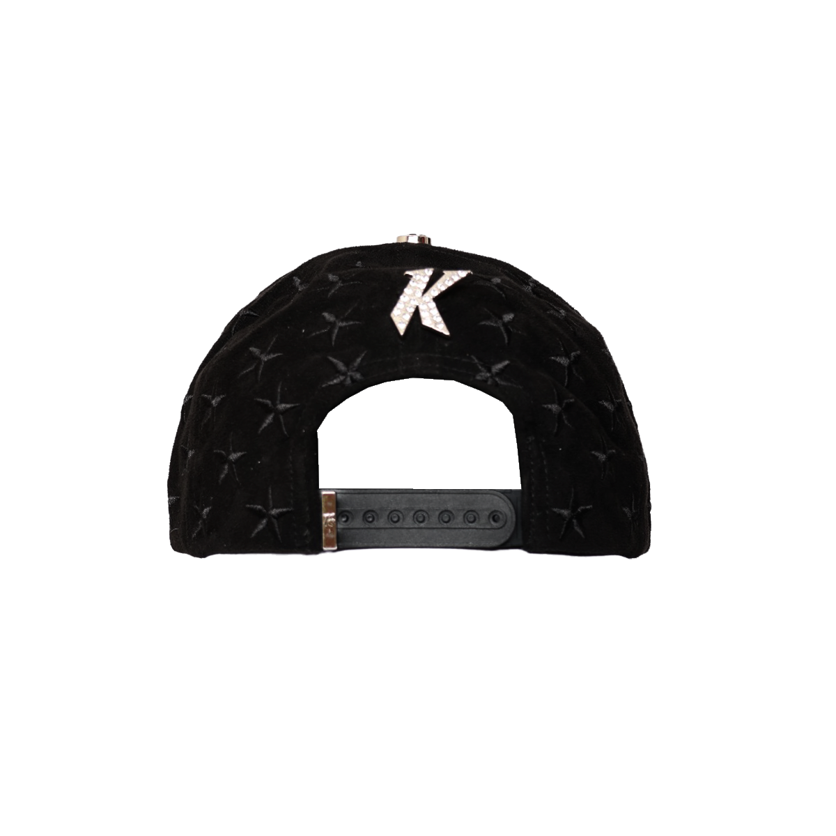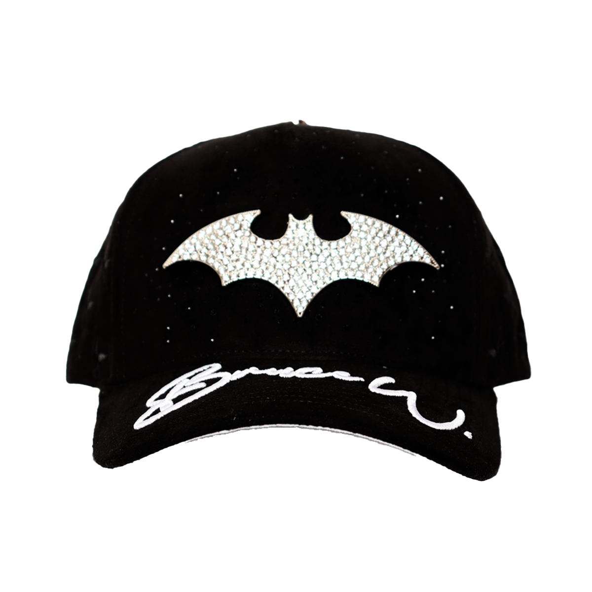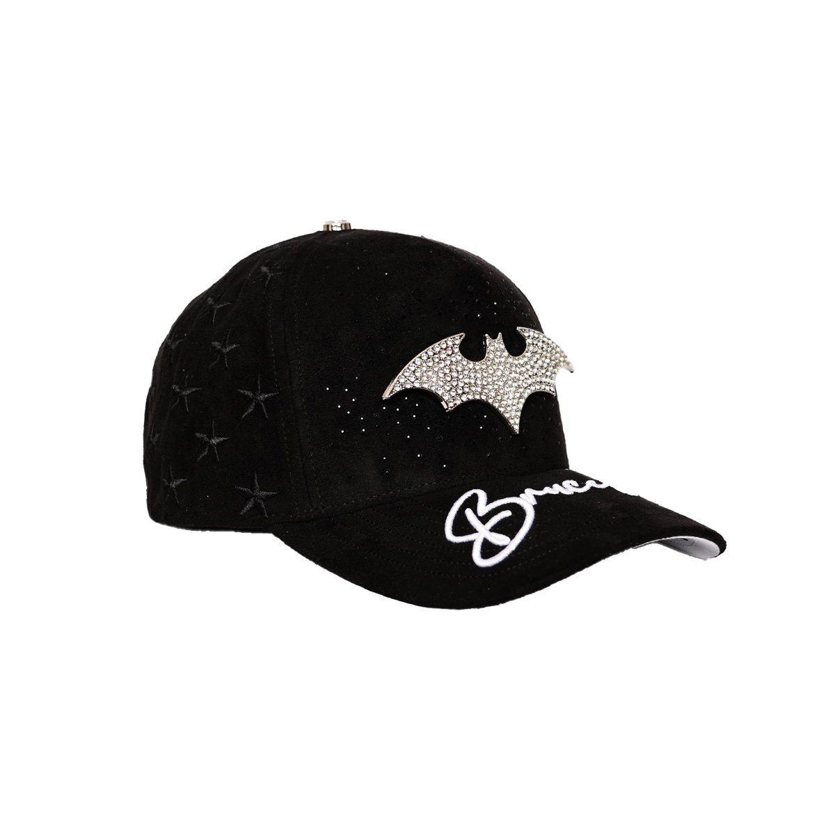 Gorra full gamuza con pin metalico con pedreria y bordado en los paneles traseros